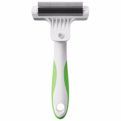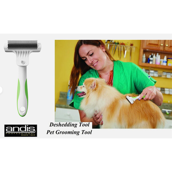 Andis Deshedding Rake Extra fein 7,5 cm breit Der Feinzahn-Enthaarungsrechen von Andis pflegt das Fell, ohne die Deckschicht zu beschädigen. Die von Profis eingesetzten Edelstahlzähne helfen dabei, überschüssiges Fell zu entfernen und so ein gesundes Fell zu fördern. Der ergonomische, rutschfeste Griff liegt angenehm in der Hand, egal ob Sie Terriermäntel zähmen oder im Salon eine Katze enthaaren. Dieses hochwertige Werkzeug von Andis hält das Fell nicht nur frisch, es reduziert auch den Haarausfall um bis zu 90 %. Masse: 7,5 cm breit; 16 cm lang;