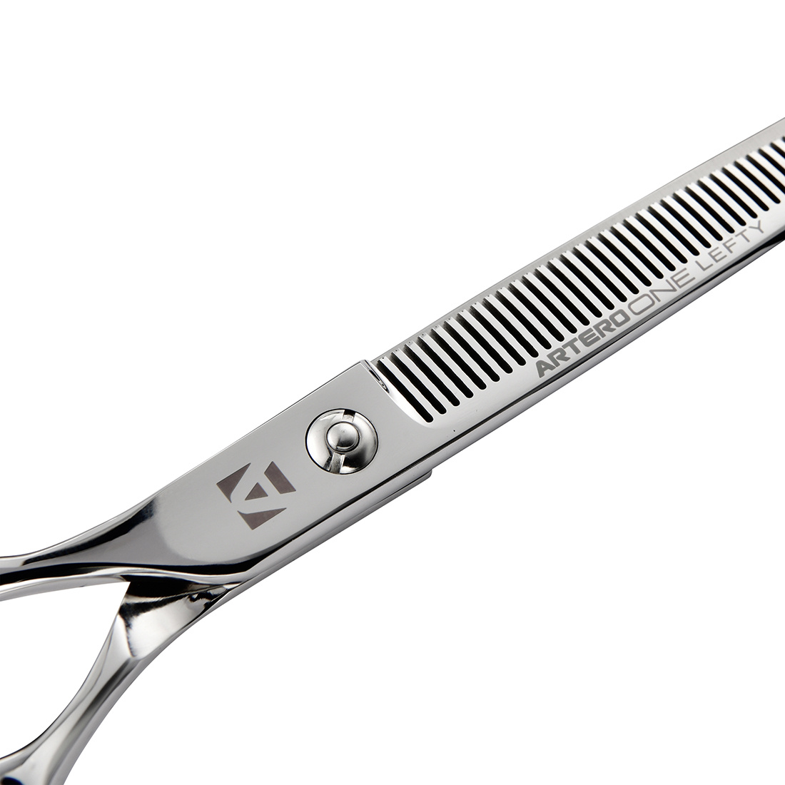 ARTERO „One“ Modelierschere 7,5″ 45 Zähne Linkshänder Professionelle Groomerschere. Merkmale: Gerade Zähne. Anzahl der Zähne: 45. Ergonomisches Design. Griff: symmetrisch. Verstellbare Schraube. V1-legierter Stahl. Härte 57 HRc. Größe: 7,5 “