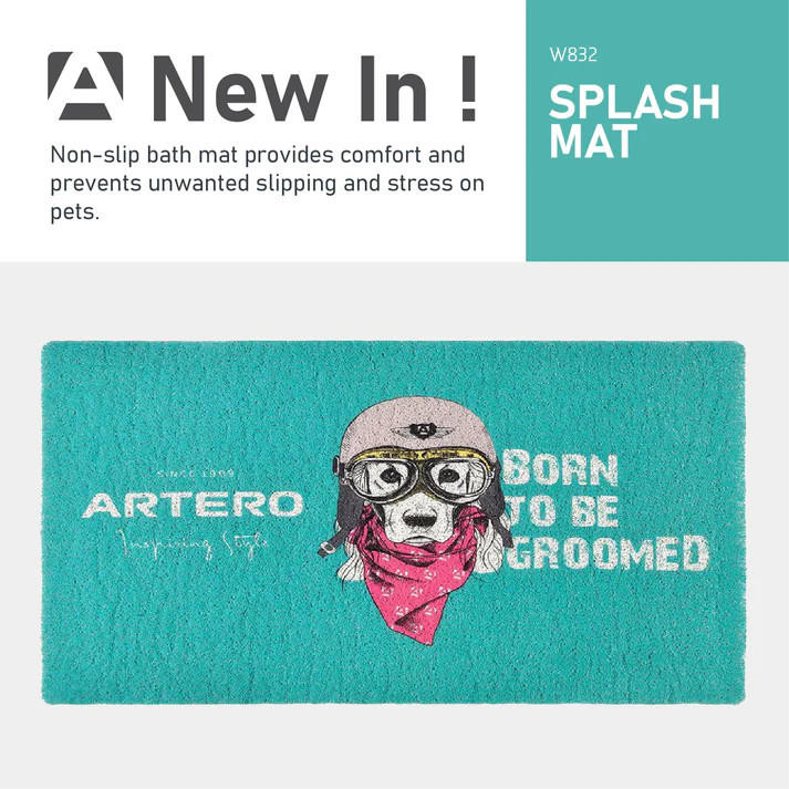 Artero Spritzschutzmatte 107 x 56 cm Diese PVC-Badematte wurde entwickelt, um das Baden für Haustiere komfortabler und sicherer zu gestalten: – Sie bietet mit einer Dicke von 1 cm eine hervorragende Polsterung und ist somit auch für große Hunde geeignet. – Mit ihren großzügigen Maßen von 107 x 56 cm ist sie für Hunde aller Rassen geeignet. – Die strukturierte Oberfläche sorgt für Rutschfestigkeit, selbst auf Metall oder Kunststoff. So kann Ihr Hund oder Ihre Katze sicher in der Badewanne stehen, ohne auszurutschen oder zu wackeln. – Wasser und Schaum werden vollständig abgefiltert, was das Abspülen erleichtert und beschleunigt. – Die Matte lässt sich zum Transport und zur Aufbewahrung einfach zusammenrollen oder falten und nimmt nach dem Aus- oder Ausrollen schnell wieder ihre ursprüngliche Form an. – Dank ihrer Dicke und der weichen Polsterung bietet sie Ihrem Hund höchsten Komfort und Entspannung beim Baden. – Die Matte ist weich und angenehm auf der Haut und schont so Tier und Pflegeutensilien. – Ihr Design ist ideal für professionelle Hundefriseure. – Sie isoliert gegen die Kälte der Badewanne (Metall oder Keramik) und sorgt so für Entspannung bei Hund oder Katze. Das erleichtert die Arbeit des Hundefriseurs. – Das Material haftet gut an der Badewanne und verhindert ein Verrutschen. – Sie ist sehr strapazierfähig. Anwendung der PVC-Matte für Hunde und Katzen – Rollen Sie die PVC-Matte aus und legen Sie sie zum Baden Ihres Hundes oder Ihrer Katze auf die Badewanne oder die Ablagefläche. – Nach Gebrauch gründlich ausspülen, abtropfen lassen und an einem gut belüfteten Ort trocknen. – Zusammenrollen und an einem trockenen, gut belüfteten Ort, am besten in einer Schutzhülle, aufbewahren. Zusammensetzung der gepolsterten Matte für Hunde und Katzen – Hergestellt aus hochwertigem PVC-Silikon.