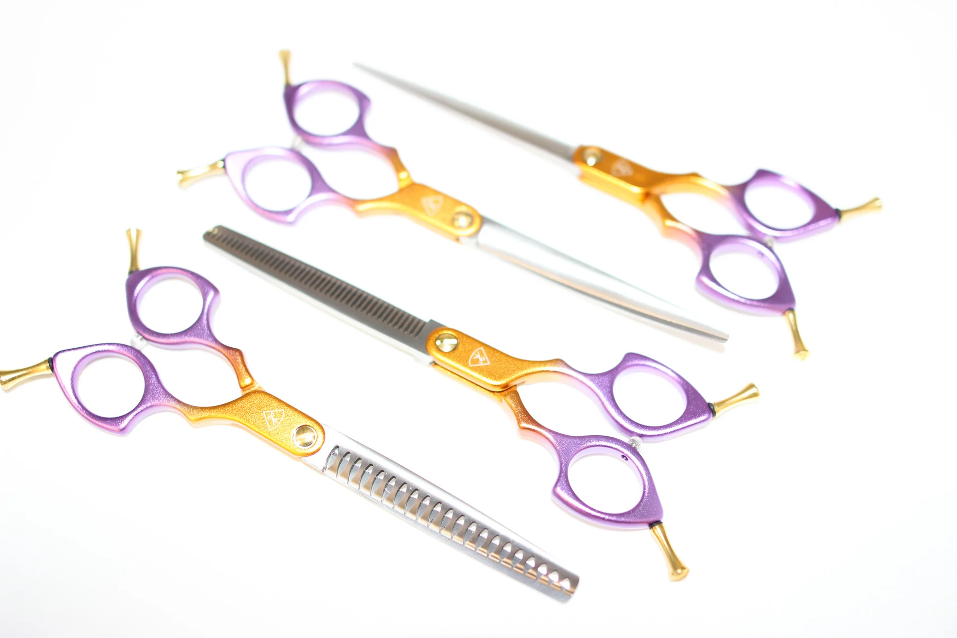 Das Asia Scheren Set in Lila-Gold ist die perfekte Wahl für präzises Styling kleiner Hunde im Asiastyle. Mit seinem federleichten Design ermöglicht es müheloses Schneiden und sorgt für exakte, feine Schnitte.