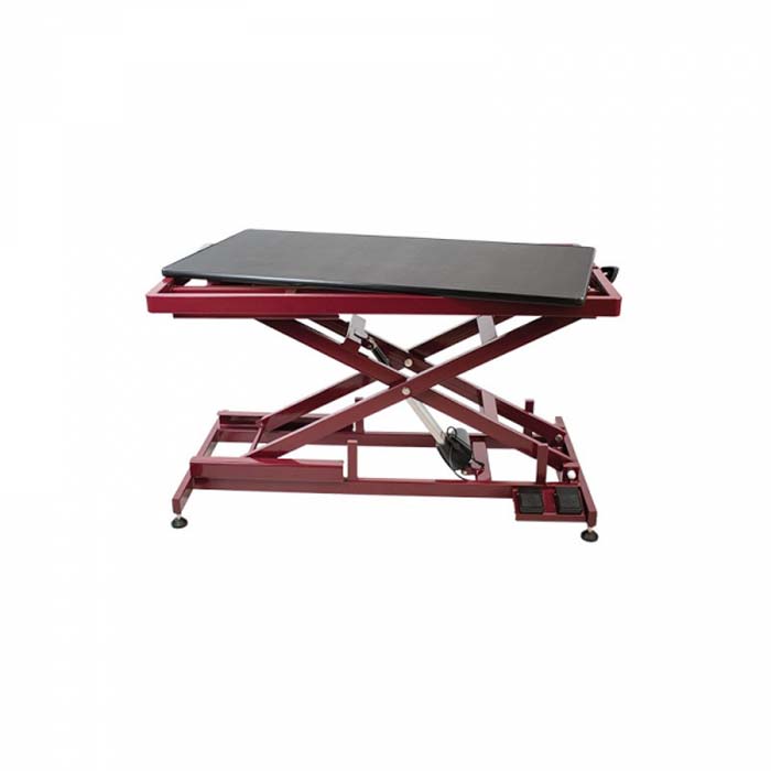 Elektrischer Schertisch 125 x 65cm Tischplatte Höhe 21cm bis max 109cm Rahmen Farbe: Burgunderrot (RAL 3005) Ein sehr stabiler elektrischer Schertisch. Die Arbeitsplatte ist mit einer Gummi-Oberfläche beschichtet, Maße 125 x 65cm.