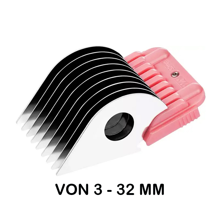 – Sehr langlebig – aus rostfreiem Edelstahl gefertigt! – Problemloses Gleiten durch alle Fellarten! – Resthaarlängen von 3 bis 32 mm möglich! – Jeder Aufsteckkamm hat glatte und abgerundete Spitzen! – Für optimale Resultate mit den Snap-on-Scherköpfen #10 oder #30 benutzen! -Set aus 3,6,10,13,16,19,22,25,32;