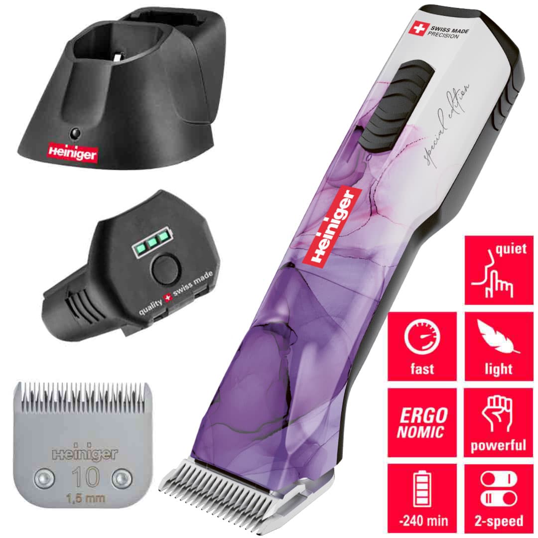 Die Heiniger Opal Special Edition lila mit Akku Schermaschine inklusive 10 er Scherkopf.