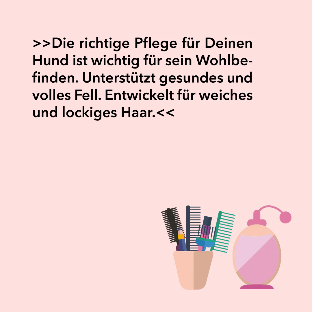 Dieses Shampoo wurde entwickelt für feines, lockiges, welliges Fell, das etwas mehr Volumen benötigt zum frisieren. Es stellt das Fell mehr auf und bringt Fülle.