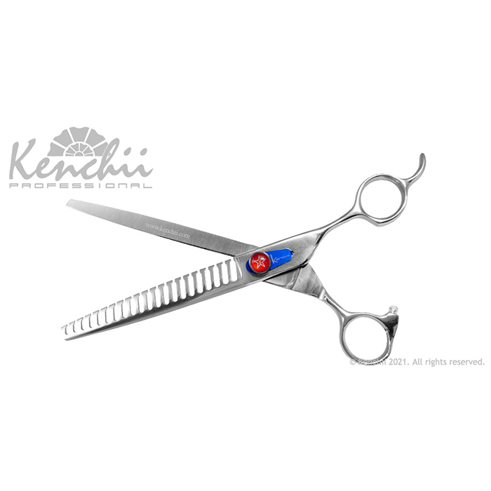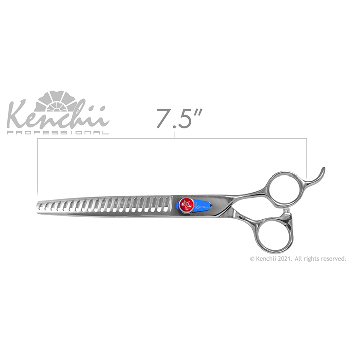 Kenchii Five Star Offset™ Speedcutter 21 Zähne 7,5″ Die Five Star-Serie ist eine unserer vielseitigsten Pflegeutensilien und eignet sich hervorragend für die tägliche Pflege. Diese Linie bietet mehrere Auswahlmöglichkeiten, um Ihren spezifischen Pflegeanforderungen gerecht zu werden, und bietet zuverlässige Haltbarkeit und Schneideleistung. Der versetzte Griff und die permanente Fingerauflage sorgen für eine natürlichere Handhaltung für Komfort und Kontrolle. Five Star Offset Gerade: 6,0″, 7,0″, 8,0″, 9,0″ Gebogen: 6,0″, 7,0″, 8,0″, 9,0″ Modelierschere: 46 Zähne, 6,5″