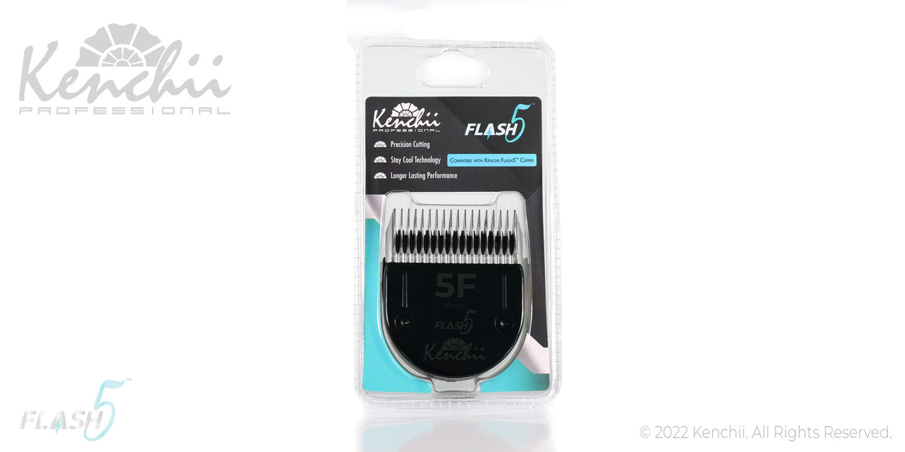 Kenchii Flash5™ | 5F Blade Kenchii® Flash5™ Klingensätze werden aus hochwertigen Edelstahllegierungen hergestellt. Eine spezielle proprietäre Beschichtung sorgt dass die Klingen kühler laufen und jedes Mal eine außergewöhnliche Leistung liefern. MERKMALE: Präzises Schneiden mit geringem Geräuschpegel Stay Cool Technologie Länger anhaltende zuverlässige Leistung Kompatibel mit der Kenchii Flash5™ Haarschneidemaschine. *Das Kenchii Flash5™ Kammset