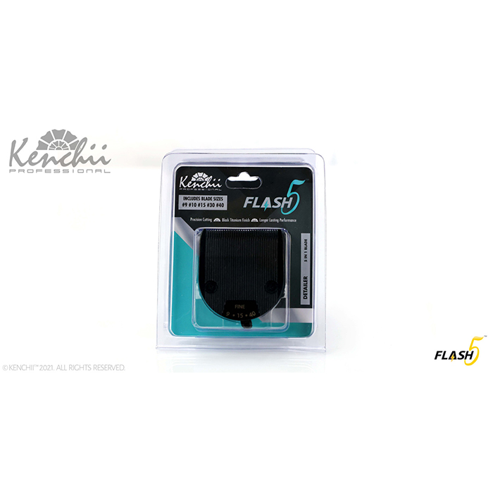 Kenchii Flash5™ Clipper Blade | Detailer Kenchii Flash5™ Standardklinge Die Kenchii Flash5™ Standard-Klinge ist eine der neuesten Klingen des Kenchii. Das Standard Blade ist mit dem Flash5™ kompatibel! Es verfügt über einen größenverstellbaren Schieberegler von: 40-15-9 Einstellung. Die Kenchii Flash5™ Standardklinge besteht aus titanbeschichteter Keramik/Edelstahl.