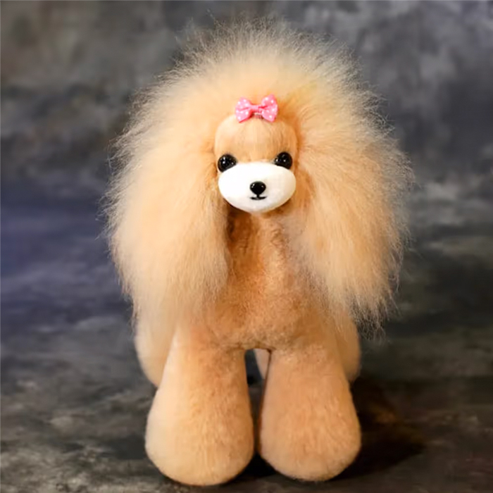Mr. Jiang Pudel Toy Model Dog Ganzkörperhaare in beige mit weißer Schnauze