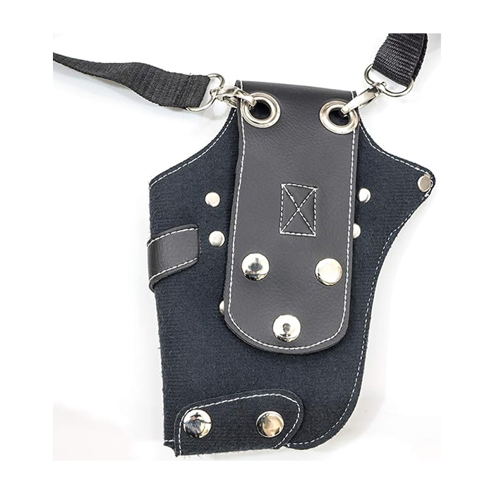 Scherentasche Scherenholster schwarz Scherenhalter oder auch Scherenholster, Werkzeugtasche, Scherengürtel, oder Umhängetasche für Scheren für Groomer genannt.Damit Ihre Schere sauber, ordentlich und sicher ist. Behindert nicht bei der Arbeit. Hergestellt aus hochwertigem Leder mit Stoffeinsatz