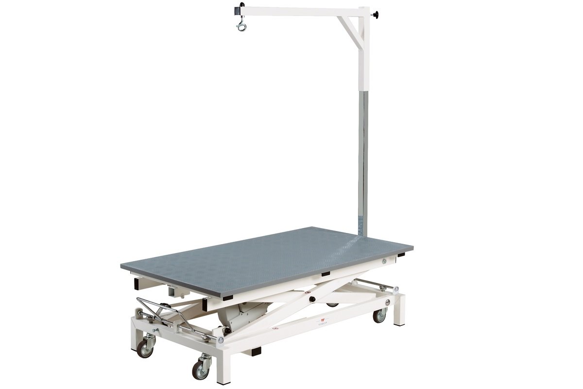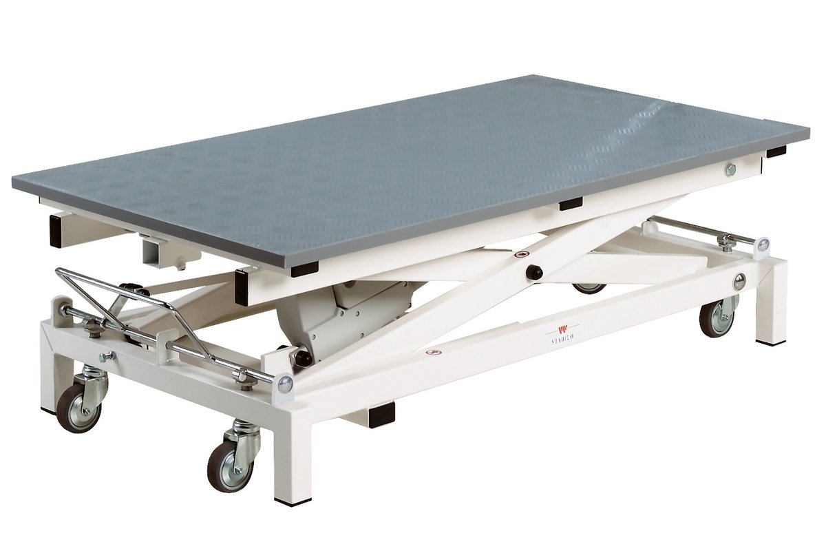 Stabilo Super New Fix mit Rädern und Einarmhalterung Sehr robuster Tisch – getestet mit einem Gewicht von 150 kg, ausgestattet mit elektrischer Buchse und mit einer 120 x 65 cm großen rutschfesten Gummi-Tischplatte. Niedrigste Position 37 cm Höchste Position 95,5 cm 24V, sehr niedrige elektrische Spannung (wird auch in Krankenhäusern für medizinische Betten verwendet) CE-Norm, Ersatzteilverfügbarkeit Der Rahmen ist mit Epoxidharz beschichtet und deckt für perfekte Stabilität eine 115 x 60 cm große Fläche auf dem Boden ab 4 verstellbare Füße 4 Rollen. Lässt sich mit einem einfachen Pedal auf den Rollen anheben, um die Reinigung zu erleichtern und den Tisch leicht zu bewegen… Doppelarm inklusive Magnetische Handsteuerung und Kunststoffkette im Lieferumfang enthalten!