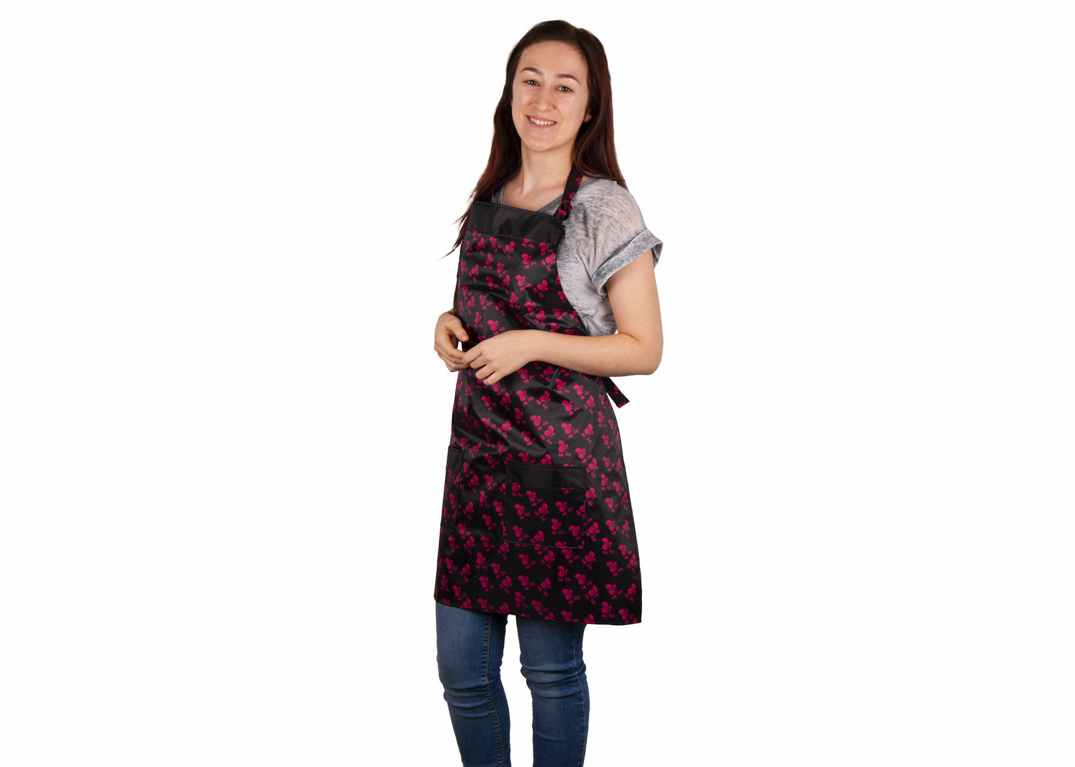 Zum Schutz der Kleidung beim Trimmen oder Waschen von Hunden tragen.
