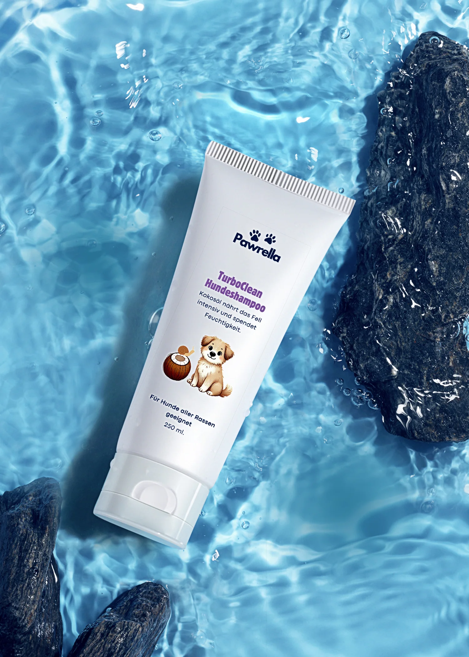 Turboclean Hundeshampoo 250 ml Turboclean – Das Shampoo für die schnelle und sanfte Hundepflege Gönne deinem Hund eine gründliche Reinigung mit Turboclean – dem Shampoo, das Schmutz und Gerüche entfernt, ohne die Haut zu reizen. Kokosöl und Apfelphospholipide, sowie Joghurt- und Schneckenextrakte spenden Feuchtigkeit und schützen die Haut. Hydrolisiertes Kollagen, Vitamin B5 und Haferprotein fordern Glanz und Geschmeidigkeit. Palaenopsis-Extrakt (Palmen-Extrakt) und Trehalose (Pflanzlicher Zusatz) bieten antioxidativen Schutz und regenerieren sanft. 🐾 Sanfte & schnelle Reinigung🐾 Pflegt & verleiht Glanz🐾 Für alle Felltypen geeignet🐾 Nachhaltig & ergiebig🐾 Ohne aggressive Chemikalien ✨ Mit natürlichen Pflegewirkstoffen:Kokosöl-Phospholipide, Apfel-Phospholipide, Joghurt-Fruchtextrakt, hydrolysiertes Haferprotein & Kollagen, Vitamin B5, Schnecken-Phospholipide, Trehalose, raffinierte Peptide & Phalaenopsis-Amabilis-Extrakt. Anwendung: 🐶✨ Dieses Shampoo kann direkt auf das nasse Hundefell aufgetragen werden. Gleichmäßig verteilen und für ca. 3 – 4 Minuten einmassieren, damit die Wirkstoffe gut einziehen können. Danach gründlich ausspülen. Mit einem Handtuch den Hund trocken Kneten (nicht rubbeln, sonst entstehen Knoten und Filz). Anschließend föhnen und bürsten gleichzeitig, damit keine Knötchen entstehen.