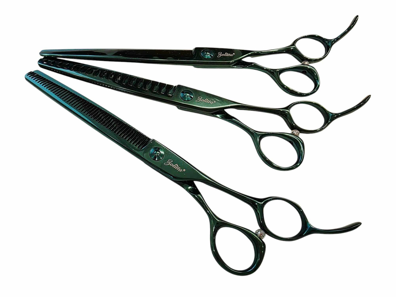 Entfesseln Sie Ihre Styling – Kunst mit dem neuen Zolitta Flora Green 3-Scheren-Set – dem Must-have-Set für 2025. Dieses exquisit gefertigte Set enthält eine 7,5″ gerade Schere, einen 7,25″ Chunkers mit 18 Zähnen und eine 7,25″ Effelierschere mit 48 V-förmigen Zähnen und bietet so maximale Vielseitigkeit für alle Ihre Styling-Bedürfnisse. Jede Schere ist aus hochwertigem japanischem 440C-Stahl geschmiedet und besticht durch außergewöhnliche Schärfe und Langlebigkeit. Anschließend wurde sie sorgfältig mit Titan in einem atemberaubenden Regenwald grün beschichtet. Der ergonomische Griff mit kurzem Schaft und gebogener Fingerauflage sorgt für optimalen Komfort und Kontrolle auch bei längerem Gebrauch. Mit seinem eleganten Design und seiner unvergleichlichen Leistung wurde das Zolitta New Flora Green Set entwickelt, um Ihr Können auf ein neues Level zu heben.